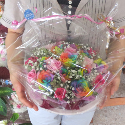 レインボー・ピンクローズ等でフラワーケーキをつくります。 |